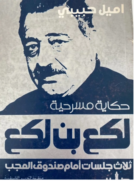 أصدر الروائي إميل حبيبي رواية لكع بن لكع سنة 1980، في ثلاث طبعات، فالأولى كانت في شباط في براغ، تشيكوسلوفاكيا السابقة، والثانية كانت في بيروت عن دار الفارابي للنشر في الصيف والثالثة التي نحن بصددها من منشورات دار 30 آذار في الناصرة في تشرين الأول من ذات السنة. هذه إشارة إلى أنّ الرواية أخذت في الانتشار الواسع في ذات السنة مما حدا بالمؤلف إلى طباعتها ثلاث مرات في السنة. وقد صدرت كل طبعة بصورة غلاف مختلفة. أما صورة غلاف هذه الطبعة فقد جاءت بريشة الفنان والأستاذ الفلسطيني كريم دباح والذي يعدّ أحد أعمدة الفن التشكيلي الفلسطيني. وهذا أيضا خيرُ دليل على أن الرواية لاقت الاستحسان والشهرة لدى القارئ في الداخل الفلسطيني وخارجه. قدمت هذه المسرحية في دمشق سنة 1982، من إخراج وليد القوتلي، وكتب موسيقاها وأغانيها بشار زرقان والذي شارك فيها بالتمثيل. إميل حبيبي هو أديب، صحفي وسياسي فلسطيني، ولد في حيفا في 29 آب 1921، إلا أنه انتقل للسكن في الناصرة سنة 1956 حتى وفاته. تفرغ للعمل السياسي في إطار الحزب الشيوعي الفلسطيني سنة 1943 وكان من مؤسسي عصبة التحرر الوطني في فلسطين عام 1945. بعد قيام دولة إسرائيل نشط في إعادة الوحدة للشيوعيين في إطار الحزب الشيوعي الإسرائيلي الذي كان أحد ممثليه في البرلمان الإسرائيلي بين السنوات 1952 و1972. ثمّ استقال من منصبه البرلماني للتفرغ للعمل الأدبي والصحافي. فقد عمل حبيبي مذيعا في إذاعة القدس (1942-1943)، محررًا في أسبوعية المهماز (1946) كما ترأس تحرير الجريدة اليومية "الاتحاد"، بين 1972-1989. في حقل الأدب، نشر حبيبي عمله الأول "سداسية الأيام الستة" عام 1968 وبعده تتابعت الأعمال "الوقائع الغريبة في اختفاء سعيد ابي النحس المتشائل" (1974)، "لكع بن لكع" (1980)، "إخطيه" (1985) وأخيرًا، "خرافية سرايا بنت الغول" (1991). وقد جعلت تلك الاعمال القليلة صاحبها أحد أهم المبدعين العرب وذلك لأسلوبه الجديد والمتميز في الكتابة الأدبية. إثر انهيار المنظومة الاشتراكية عام 1989، أعاد النظر في بعض المسلمات النظرية مما سبب له خلافات فكرية وتنظيمية مع الحزب الشيوعي، اضطر على ضوئها إلى الاستقالة من جميع مناصبه الحزبية بما فيها رئاسة تحرير "الاتحاد"، لكنه بقي عضوا في الحزب (الذي كان عضوا فيه منذ جيل 14 عاما) حتى عام 1991 حين قدم استقالته من الحزب. في عام 1990 اهدته منظمة التحرير الفلسطينية "وسام القدس" وهو أرفع وسام فلسطيني. تم اختياره في نفس العام 1991 بوصفه الكاتب الأهم في العالم العربي من قبل مجلة "المجلة" الصادرة في لندن. في عام 1992 منحته إسرائيل "جائزة إسرائيل في الأدب" وهي أرفع جائزة أدبية تمنحها الدولة. في العام الأخير من حياته انشغل بإصدار مجلة أدبية أسماها "مشارف"، رحل اميل حبيبي في أيار 1996 وأوصى ان تكتب على قبره هذه الكلمات: "باق في حيفا". حكاية مسرحية لكع بن لكع: كما ورد أعلاه فهذه القصة نُشِرت ثلاث مرات في ذات السنة 1980، وكل نشرة طُبِعت في مكان مختلف بغلاف مختلف. فالأول تبدو فيه صورة إميل حبيبي مع اسمه على رأس الصفحة كما ونجد اسم القصة الثلاثي بالخط العريض تحت صورة الكاتب أي حكاية مسرحية: لكع بن لكع: ثلاث جلسات أمام صندوق العجب. وقد صدرت هذه النشرة عن منظمة التحرير الفلسطينية. أما الغلاف الثاني فيحتوي على رسمة ضائعة المعالم، هناك رأسان متقابلان يختفيان وراء منديل، وفيما بينهما تبدو ملامح امرأة وكأن شيئًا يلتهمها، أحد الرأسين يقبع بين يدي أحدهما وكأنه يعطيه دفعةً للنظر داخل المنديل. أما اسم المؤلف فعلى رأس الصفحة في منتصفها. واسم الرواية يبدو هنا حكاية مسرحية: لكع بن لكع. أما الغلاف الثالث فهو الذي جاء من تصميم الفنان التشكيلي الفلسطيني كريم دباح الذي عمل محاضرًا للفنون التشكيلية في عدد من الجامعات الفلسطينية، وأسس جمعية ناجي العلي للفنون عام 1988. وهذا هو الغلاف الذي سنخوض غماره في الورقة البحثية هذه. المكون الكلامي: في الصفحة الأولى نجد العنوان "لُكعْ بن لُكعْ" في أعلى الصفحة، وفي أسفل الصفحة نجد اسم المؤلف إميل حبيبي. و