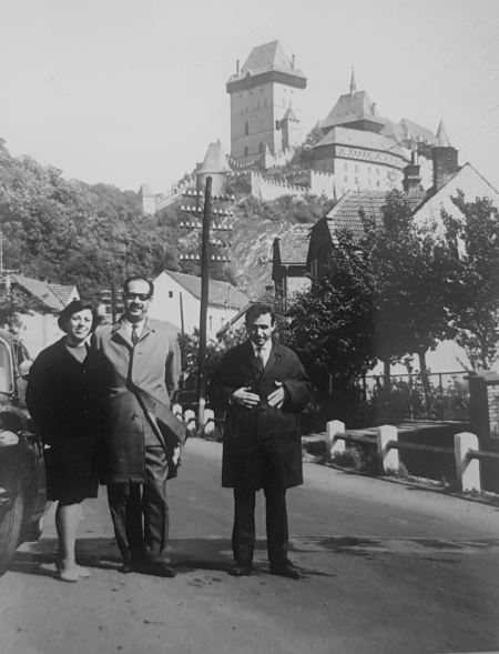 وجيه سمعان اثناء دراسته في براغ مع الرفيقيين فؤاد جابر خوري وزوجته سميرة خوري