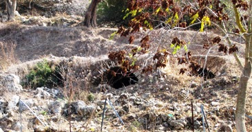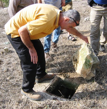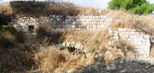 Above: Remains of the rainwater collecting pool [Arabic: Birki. Hebrew: Brecha], that was used for irrigation as well as the children's swimming pool.