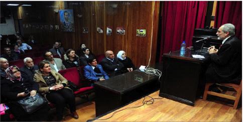 وقال الباحث في محاضرته التي ألقاها في المركز الثقافي في أبو رمانة ـ دمشق، لمناسبة اليوم السوري لثقافة المقاومة، إنّ الأغاني الوطنية التي قدّمتها السيدة فيروز تنقسم إلى قسمين، الأول عبّر عن عشق الأرض والغزل بالوطن ومحبّته، وكانت هذه الأغاني تتّسم بجمل موسيقية طربية ممدودة، فيها حنان ورقة مثل أغنية «أحب دمشق». وأضاف المحاضر أن القسم الثاني من أغاني فيروز الوطنية كانت أغانٍ حماسية على إيقاع سريع وجمل موسيقية قصيرة تُحفظ بسرعة، ومن أبرزها أغنية «خبطة قدمكم». وعن ارتباط فيروز بمعرض دمشق الدولي قال رجب باشا إنّ اسم فيروز ارتبط بمعرض دمشق الدولي، هذه التظاهرة الثقافية والاقتصادية والاجتماعية الفريدة التي انطلقت عام 1954. واعتلت السيدة فيروز خشبة مسرح هذا المعرض للمرّة الأولى عام 1956 عندما كان عمرها 21 سنة. وبدأت شهرتها ومسيرتها الفنية من خلال وجودها سنوياً في هذه التظاهرة، واستمرت مشاركتها السنوية بهذا المعرض حتى عام 1977 التي قدّمت خلالها عدداً كبيراً من أغانيها المميزة مثل: «أحبّ دمشق»، «قرأت مجدك»، «شام يا ذا السيف»، «نسمت من صوب سورية»، «مرّ بي»، و«سائليني»، وغيرها الكثير. مشيراً إلى أن مشاركة السيدة فيروز الأخيرة في دمشق كانت عام 2008 في دار الأوبرا، حيث قدّمت مسرحية «صحّ النوم». وأشار المحاضر إلى أن فيروز التي صادف عيد ميلادها الثمانون منذ أيام قليلة، بدأت في الغناء منذ كانت في سنّ الـ15، وقدّمت خلال مسيرتها الفنية عدداً كبيراً من الأغاني العاطفية والوطنية والدينية والأندلسيات، إضافة إلى الاسكتشات والمسرحيات، وبلغ عدد أعمالها تقريباً 550 أغنية. وذكر المحاضر أن الرحابنة تلقّفوا صوت فيروز منذ صغرها، واستطاعوا تشكيله بنمط فريد ومميّز لم يجارِه أحد حتى اليوم، ولم يظهر صوت كصوتها. واستمع الحضور خلال المحاضرة إلى مقاطع من أغاني السيدة فيروز التي غنّتها للشام. عن موقع صحيفة البناء 24/11/2015 include ('facebookshare.php'); ?> |