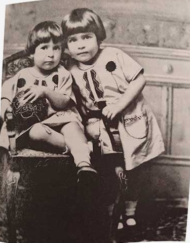 هالة السكاكيني واختها دمية في فترة الطفولة