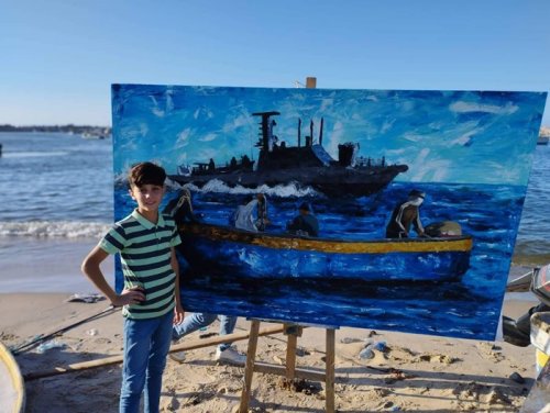 رسام غزة الصغير يحول معاناة الصيادين إلى لوحات مفعمة بالألوان - رفيف إسليم