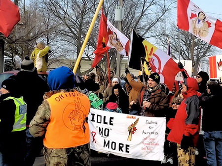 احتجاج للسكان الأصليين في منطقة متاخمة للحدود الأمريكية-الكندية، ضد انتهاك حقوقهم الجماعية