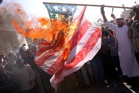 ![]() متظاهرون في البحرين يحرقون العلم الأمريكي احتجاجا على انحياز واشنطن للنظام