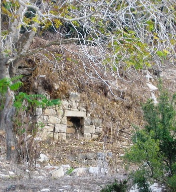 Above: Remains of the rainwater collecting pool [Arabic: Birki. Hebrew: Brecha], that was used for irrigation as well as the children's swimming pool.