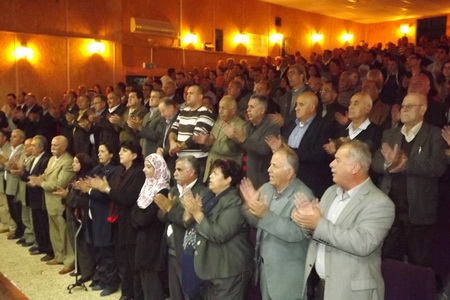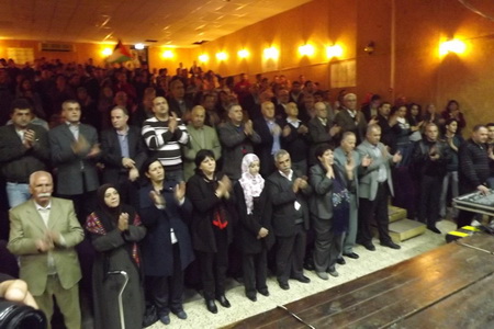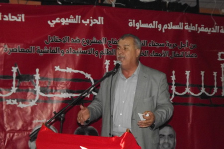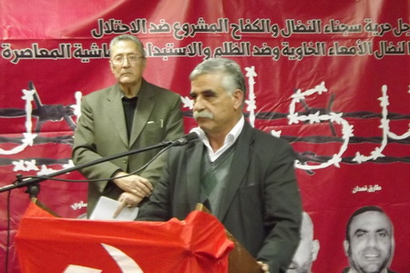 * استقبال حار لعائلة العيساوي المناضلة * يوم المهرجان صادف الذكرى الـ 19 لاستشهاد شقيق سامر العيساوي * بركة: لا أكثر نذالة من مقولة "اتركونا من قضية فلسطين ولنكن بحالنا" * أم رأفت تلقي كلمتها وسط هتافات: "يا ام الأسير ويا أم الشهيد تمردي" * هاني العيساوي: تعلمنا الصمود من ثقافة وأدب الشيوعيين العظام توما وحبيبي وزياد وغيرهم * 95 حزبا شيوعيا يطالبون مجلس الأمن الدولي بالتدخل في قضية الاسرى الفلسطينيين سخنين – لمراسلنا البرلماني - شاركت الحشود الكبيرة في المهرجان التضامني مع الأسرى الفلسطينيين، الذي بادرت إليه الجبهة الديمقراطية للسلام والمساواة، والحزب الشيوعي والشبيبة الشيوعية، مساء أمس الاول الثلاثاء، وعقد في قاعة البتراء في سخنين، التي لم تتسع بشقيها للحشود الكبيرة، التي انتشرت جموع منها في الساحة الخارجية الرحبة. واستقبل الجمهور بحفاوة وحرارة كبيرة عائلة الاسير البطل سامر العيساوي، والديه أبو رأفت وام رأفت، وشقيقته وعمه الأسير المحرر هاني العيساوي، وشارك في المهرجان، السكرتير العام للحزب الشيوعي، الكاتب محمد نفاع، ونواب كتلة الجبهة محمد بركة ود. حنا سويد ود. عفو اغبارية، ورؤساء سلطات محلية جبهوية، وقيادات في الحزب والجبهة. وتولى ادارة المهرجان المربِّي والكاتب يوسف فرح، الذي دعا الحضور للوقوف دقيقة صمت اجلالا لشهيد فلسطين عرفات جرادات الذي استشهد في سجون الاحتلال في نهاية الأسبوع الماضي، كما تخلل الحفل مقطوعات غنائية وطنية ملتزمة، من الفنان لبيب بدارنة وفرقته. وقال فرح في كلمته، إن أكثر "ما يفاجئ" اسرائيل في هذه الأيام، هو أن تنشب انتفاضة فلسطينية، ففي رأي الاحتلال، لا يوجد ما يبرر حتى الاحتجاج الفلسطيني، على جرائم الاحتلال اليومية، إلا إذا أرادت السلطة الفلسطينية انتفاضة كهذه، وكأن الشعوب المظلومة تحتاج من يقرر لها أن تنتفض ضد الظلم والطغيان. وتابع فرح قائلا، أي أمل أبقاه الاحتلال لشعبنا العظيم؟، حتى يرتاح من الظلم والذل والهوان، إن دوام الاحتلال لهو من المحال، ونحن من هنا نقول للأسرى البواسل، نحن معكم حتى نيل حريتكم والاستقلال لشعبنا وقيام الدولة الفلسطينية. ![]() يا أم الاسير ويا أم الشهيد واستقبل الحشد الكبير وقوفا، أم رأفت، والدة الشهيد ووالدة الأسرى الثلاثة، وسط هتافات لها من الشبيبة الشيوعية والجبهوية: "يا ام الشهيد تمردي كل الشباب اولادك" و"يا أم الأسير تمردي كل الشباب اولادك". وافتتحت ام رأفت كلمتها، لتعبر عن سرورها بوجودها في هذا المهرجان الضخم، رغم ما في قلبها من ألم، فعين على سامر الذي جسده يذوب، وشقيقيه اللذين يمضيان سنوات طويلة في الاسر، وعين على ابنها الشهيد فادي، الذي صادف يوم المهرجان الذكرى الـ 19 لاستشهاده بنيران الاحتلال، خلال مظاهرات الاحتجاج على مجزرة الحرم الابراهيمي، وبيّنت أنها المرّة الأولى التي تدخل فيها الى داخل الخط الأخضر، منذ سنوات السبعين، وقررت أن تشذ عما التزمت به، منذ أربعة عقود، من أجل المشاركة في هذا المهرجان، الذي يعقد في بلد مناضل أصيل، بلد يوم الارض سخنين. والقت أم رأفت، خطاب الأم الحنون، الأم المناضلة، التي ما سمحت للعواطف الانسانية أن تكسر الصمود البطولي في وجه المحتل، في عائلة فلسطينية نموذجية، فالأم ذاقت مرارة سجون الاحتلال في بداياته، والابنة كذلك على درب أمها، وابن سقط شهيدا على مذبح الاحتلال، وشقيقان يمضيان سنوات طويلة في الاسر، وثالث، سامر، جسده يذوب خلف قضبان الاحتلال، دفاعا عن شعبه وحريته. وقالت ام رأفت، إن سامر "مش غاوي جوع"، بل هو مضرب عن الطعام دفاعا عن كرامته وكرامة شعبه، فأنا فخورة بسامر وشقيقيه وفادي الشهيد، الذي استشهد قبل 19 عاما، في مثل هذا اليوم بالضبط. دفاعا عن الاسرى وذكر الرفيق نيف ميخائيلي من تل أبيب، تجربته في معالجة شؤون الأسرى، خلال عمله في منظمة أطباء من أجل حقوق الانسان، وكيف رافق معاناة اسير شاب صغير من الجهاد الاسلامي من منطقة قلقيلية، تعرض للتعذيب في سجون الاحتلال. وقال 