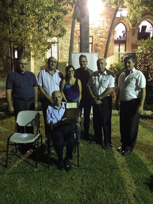 صورة اخيرة تم التقاطها في حفل تكريم المرحوم وجيه سمعان في مركز مساواة في العام الماضي. من اليمين: جعفر فرح، واكيم واكيم، فادي سمعان، رنين جريس، فادي سويدان، جوني منصور، والراحل وجيه سمعان جالسا...